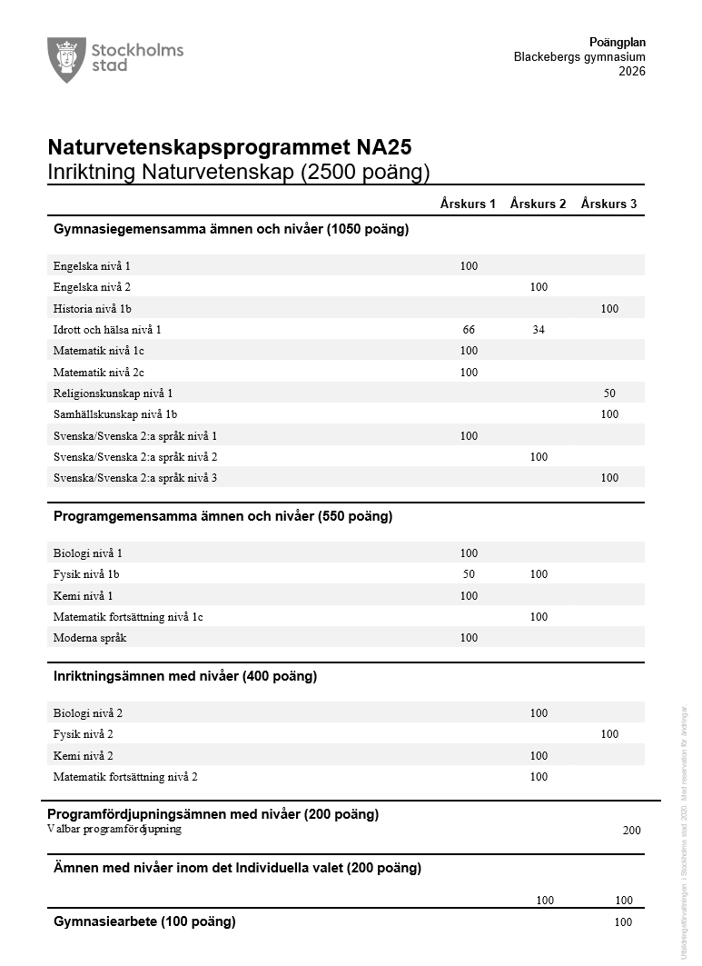 - Inriktning naturvetenskap