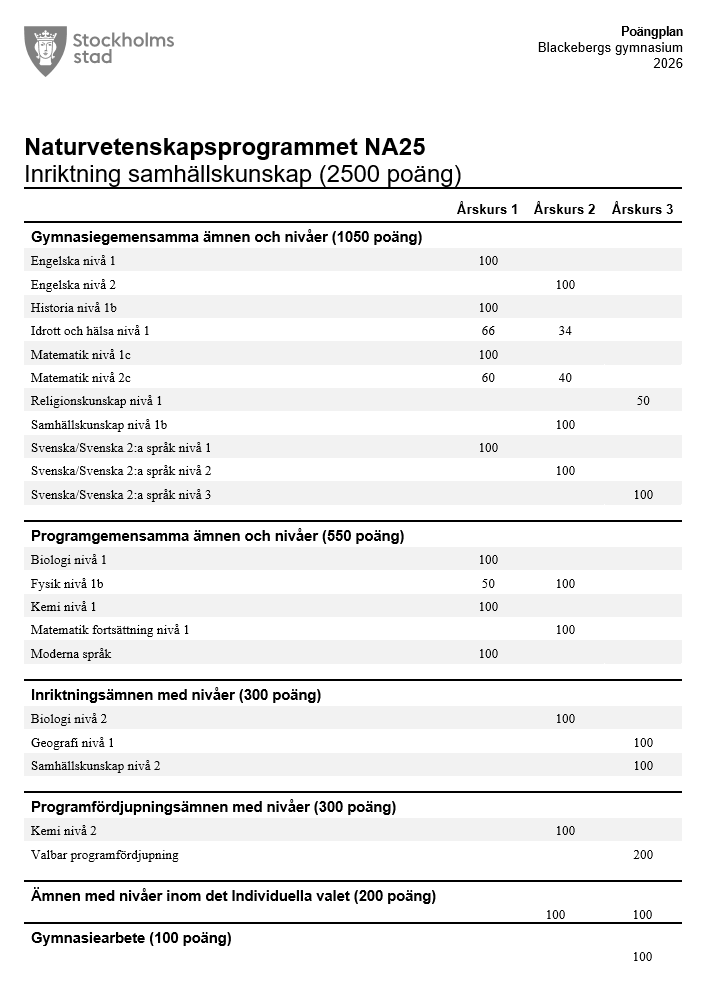 - Inriktning naturvetenskap och samhälle